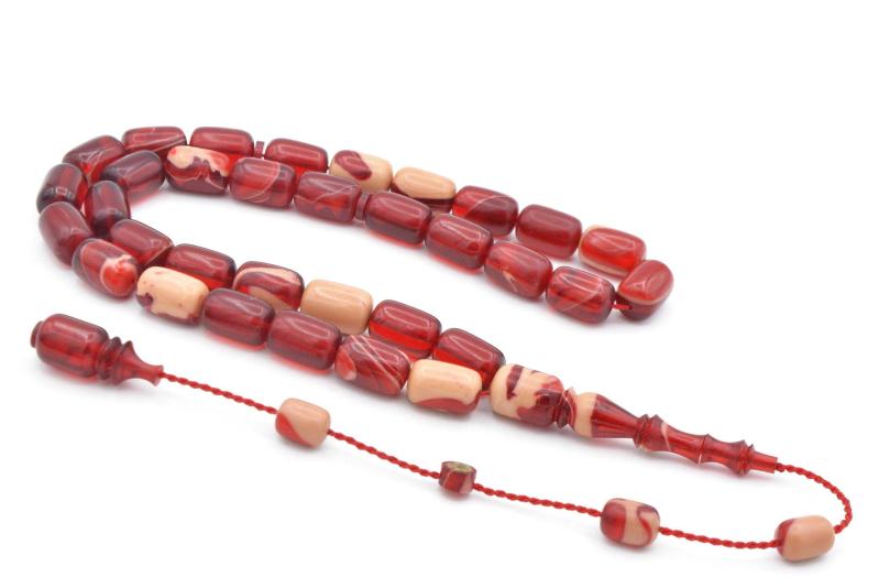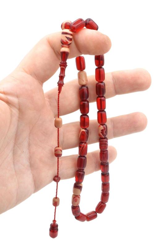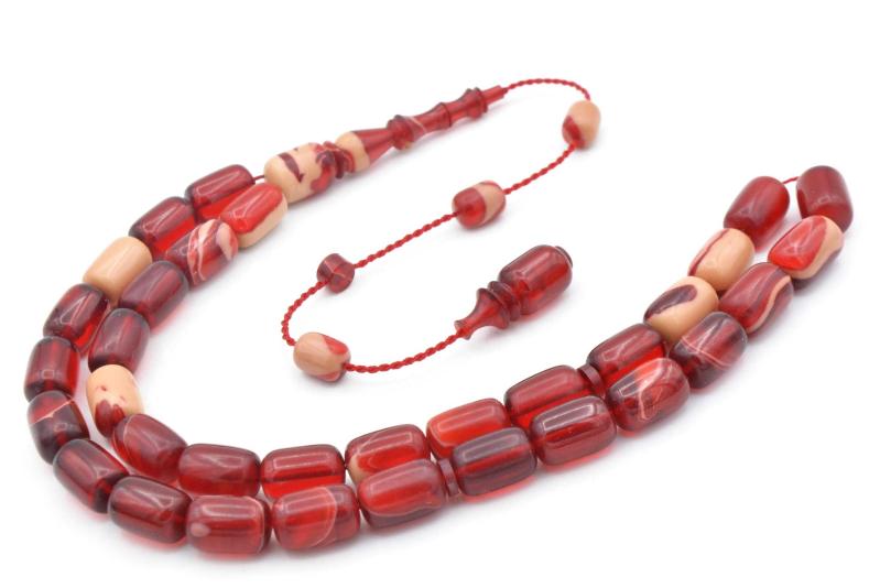 Bünyamin Barlak İmzalı Kapsül Kesim Kırmızı Beyaz Sıkma Kehribar Tesbih başlıklı antika/koleksiyon objesi Türkiye menşe’lidir. 2000 ve sonrası dönemine aittir.