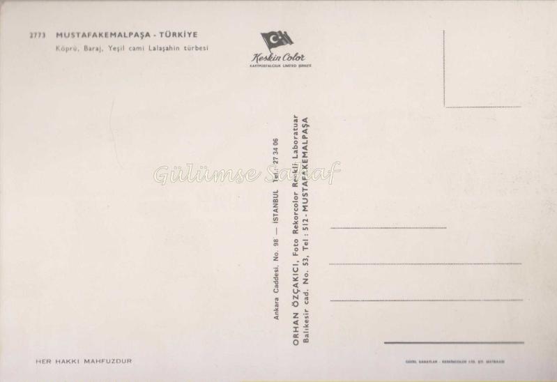 Bursa - Mustafakemalpaşa / Köprü, Baraj, Yeşil Cami, Lalaşahin Türbesi / Keskin Color başlıklı ürün, Efemera, Müzik, Sinema > Kartpostallar > Şehir Kartpostalı > 1960 ve sonrası kategorisi altında İkinci El olarak satılmaktadır.