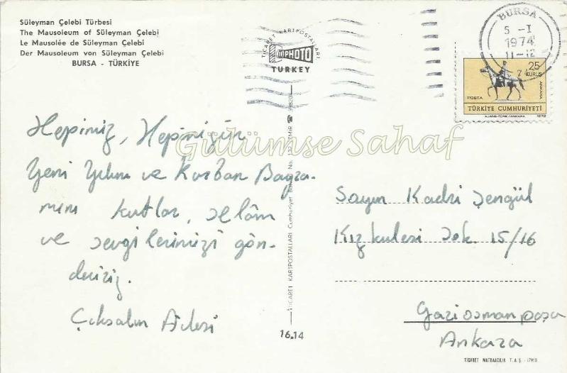 Bursa - Süleyman Çelebi Türbesi / Ticaret Kartpostalları / Postadan Geçmiş, Pullu ve Damgalı, en son 5 gün önce güncellenmiştir.