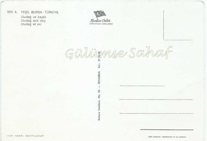 Bursa - Uludağ ve Kayak / Keskin Color başlıklı ürün, Efemera, Müzik, Sinema > Kartpostallar > Şehir Kartpostalı > 1960 ve sonrası kategorisi altında İkinci El olarak satılmaktadır.