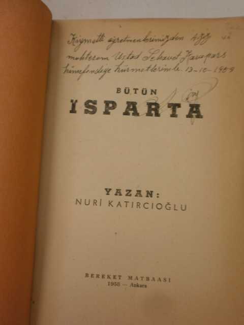 Bütün Isparta, Nuri Katırcıoğlu tarafından kaleme alınmıştır. Kitap 1958 yılında Bereket Matbaası tarafından [Ankara] yayınlanmıştır. 180 sayfadır. Bütün Isparta adlı eser Türkçe dilindedir.