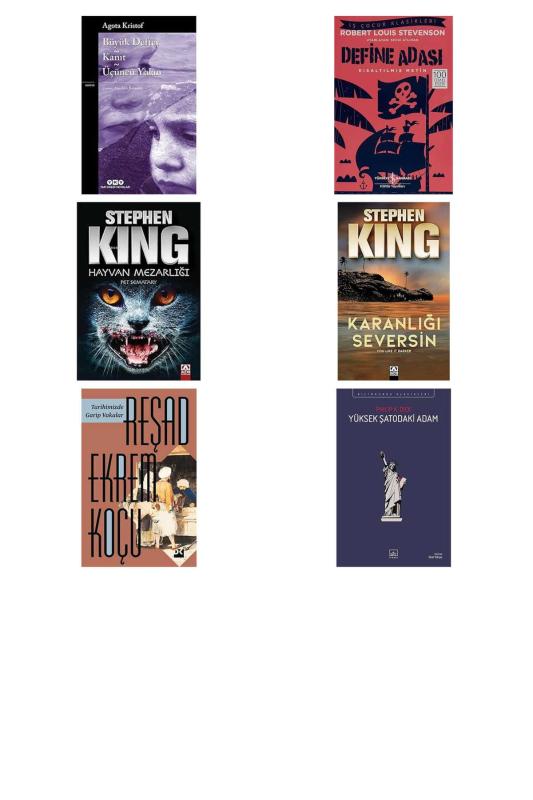 Büyük Defter - Kanıt - Üçüncü Yalan - Define Adası - Kısaltılmış Metin: İş Çocuk Klasikleri - Hayvan Mezarlığı - KARANLIĞI SEVERSİN - Tarihimizde Garip Vakalar - Yüksek Şatodaki Adam: 1963 Hugo Ödülü
