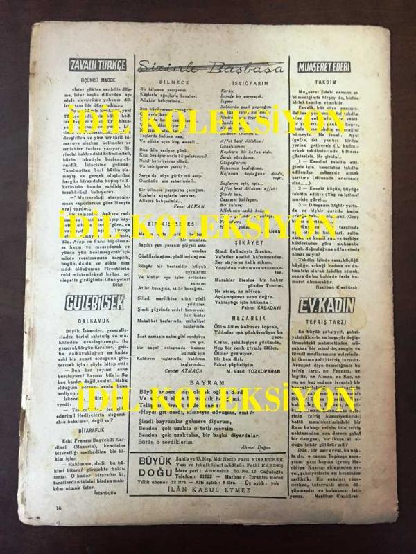 Büyük Doğu Dergisi (Dönemine ait, Orijinal) - Necip Fazıl Kısakürek - 13. SAYI - 25 OCAK 1946 - CAFER SENO - KAZIM NAMI - ABDURRAHMAN ŞEREF - ADIDEĞMEZ - BURHAN BELGE - OKTAY AKBAL - NİZAMETTİN NAZİF - SALİH ZEKİ - MUHİTTİN DİLER - ZİYA ŞAKİR - MEHMET TURHAN - NESLİHAN KISAKÜREK - İSKENDER FİKRET - SALAH BİRSEL - FERDA GÜLEY - BU ÇOCUKLARA HAZIRLANAN İSTİKBAL NE? - TÜRKÜN MUHASEBESİ 2 - YENİDEN KEŞFOLUNMAK - YARIN, YARINIMIZ, EĞİTİM SİSTEMİMİZ - KUMAR - MİLLİYETÇİLİK - AMERİKAN ORDUSUNUN BOŞ SAATLERİ - SÜMERBANK - HADİSELERİN MUHASEBESİ - MUSİKİ - VE SENİN NESLİN! - ORMANDA SÖYLENEN TÜRKÜ - ZÜLFÜ'NÜN KAHVESİ - KİMSESİZ ÇOCUKLAR MESELESİ - TİRENDE BİR KONUŞMA - ZAVALLI TÜRKÇE adlı eser Türkçe dilindedir.