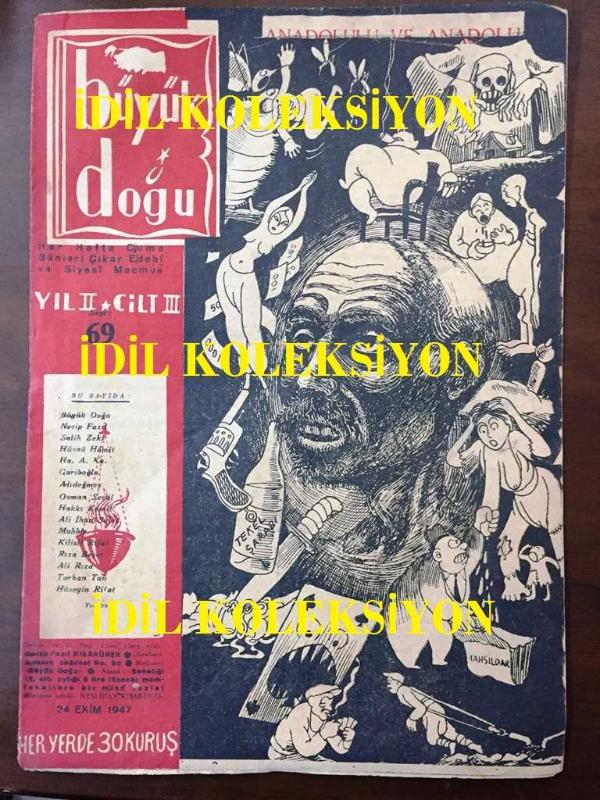 Büyük Doğu Dergisi (Dönemine ait, Orijinal) - Necip Fazıl Kısakürek - 69. SAYI - 24 EKİM 1947 - SALİH ZEKİ - HÜSNÜ HAMİT - GARİBOĞLU - ADIDEĞMEZ - OSMAN SEVAL - HAKKI KAMİL - ALİ İHSAN SABİS - MUHBİR - KİLİSLİ RİFAT - RIZA BEŞER - ALİ RIZA - TURHAN TAN - HÜSEYİN RİFAT - ANADOLULU ve ANADOLU - İSLAM ve GÜZEL SANATLAR - AHLAK ve HUKUK -- İMAM GAZALİ'DEN HİKMETLER - ÜLFET ÖLÇÜSÜ - ALEVİ ve RAFIZİLERE CEVAP - SALAHADDİN FERİDUN - ÇELEBİ HÜSAMEDDİN - KÖY ENSTİTÜLERİNİN İÇYÜZÜ - İKTİSADİ MANZARALARIMIZ - HADİSELERİN MUHASEBESİ - MOSKOF TEHLİKESİ KARŞISINDA TÜRKİYE - SOKRATES'İN ÖLÜMÜ - HAPİSHANE NOTLARI - AKYAZININ KARAYAZISI - YOLLAR ve GÖKLER - BİRİNCİ DÜNYA HARBİNDEN BUGÜNE - TEBRİZDEN MALTA'YA - 19'UNCU ASIRDA İSTANBUL - SERSERİLER ve POLİS adlı eser Türkçe dilindedir.