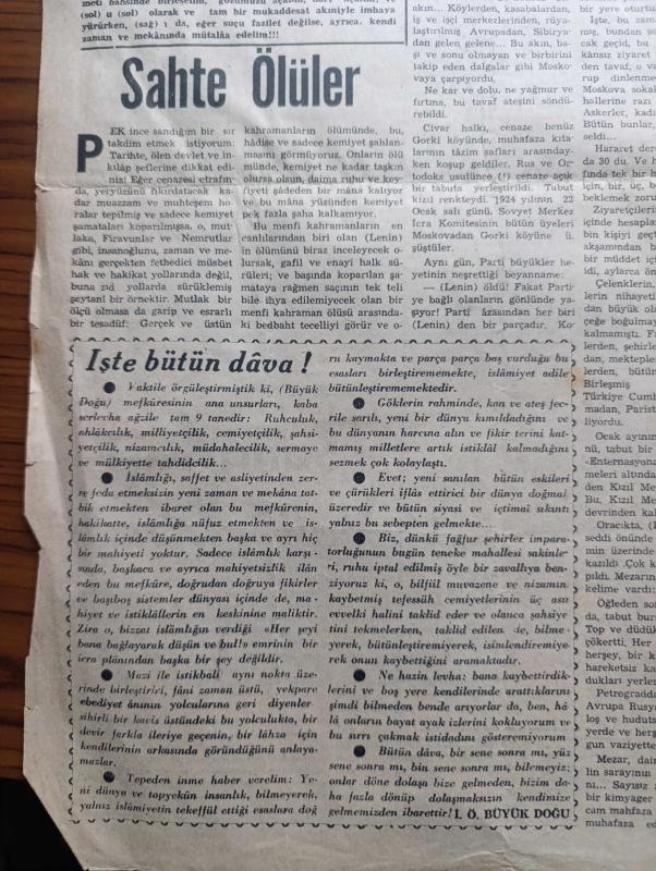 Sayfa Boyutu : 30*42 cm Sayfa Sayısı: 4 Büyük Doğu Gazetesi Yıpranma, sararmalar, kupon kesiği ve yırtılmalar zamana bağlı olarak görülebilir Not: Tam takım gazetedir