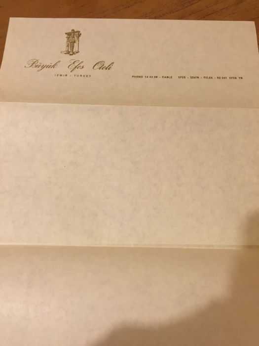 Büyük Efes Oteli İzmir Antetli Eski Mektup Kağıdı