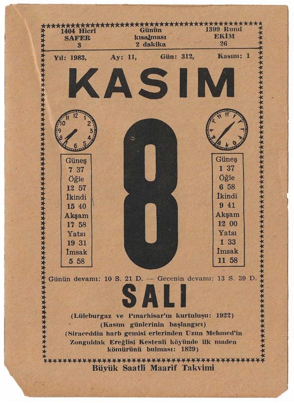 Büyük Saatli Maarif Takvimi, 8 Kasım 1983 Salı günü.