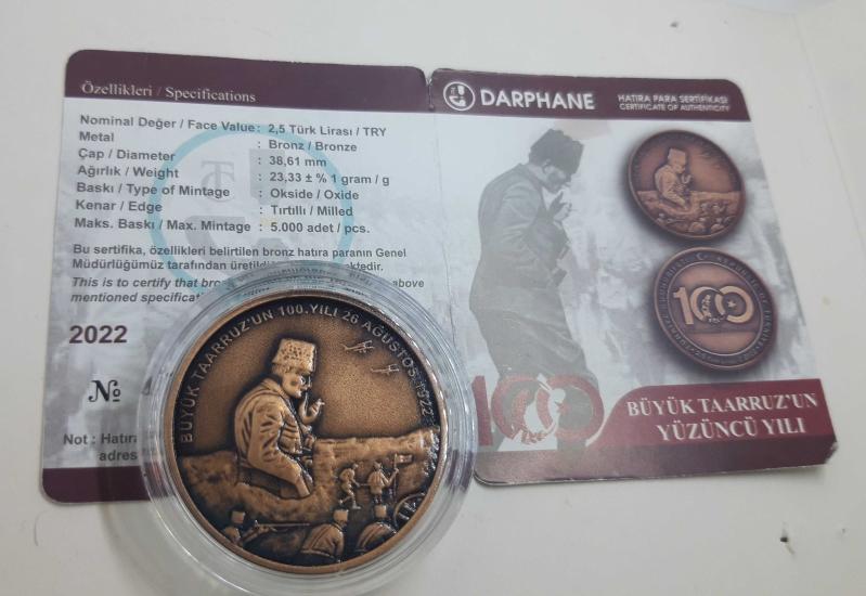 Büyük Taarruzun 100 . Yılı Bronz Darphane Hatıra Parası 2022 Sertifikalı, 2 yıl önce satışa sunulmuştur.