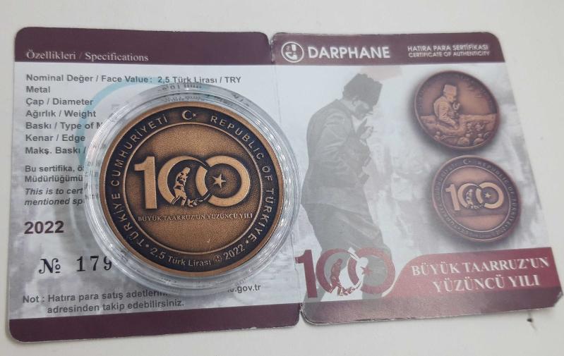 Büyük Taarruzun 100 . Yılı Bronz Darphane Hatıra Parası 2022 Sertifikalı , 5000 basım adedi Aldığınız ürün indirimli olarak Aras Kargo ile gönderilecektir.