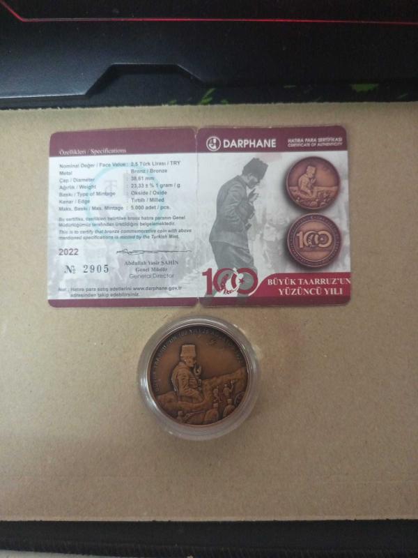 Büyük Taarruz'un 100. Yılı Hatıra Bronz Para Sertifikalı, en son 10 gün önce güncellenmiştir.