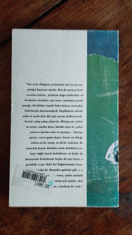 "Siss niçin olduğunu anlamadan Unn'un yanına, yatağın kenarına oturdu. İkisi de aynanın birer ucundan tuttular, yüzlerine doğru kaldırdılar ve hareketsiz oturdular, yan yana, neredeyse yanak yanağa. Gördükleri neydi? Daha farkına varmadan birbirleriyle doluvermişlerdi. Kipriplerinin altında ışıkla ve ışınla dolu dört göz aynayı dolduruyordu. Sorular çakıp çakıp yitiyordu. Bilmiyorum: Işıklar ve ışınlar, senden bana, benden sana mı, yoksa yalnızca benden sana mı yansıyor... Aynaya giriyor, sonra gene çıkıyor, bunun ne olduğu üstüne ne bir cevap, ne de bir açıklama, Bu somurtuk kırmızı dukaklar senin dudakların mı, hayır değil, benim dudaklarım, ne kadar da benziyorlar birbirlerine !