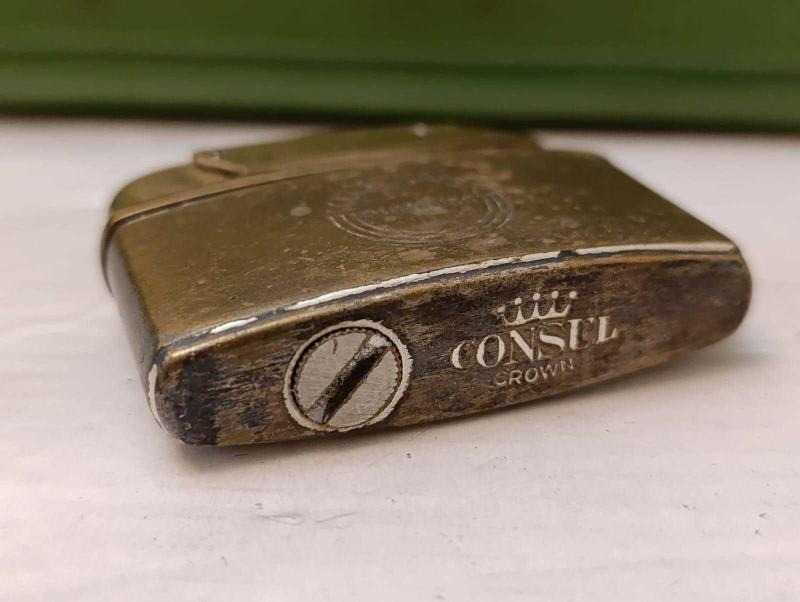 Ç4--- ÇALIŞAN ESKİ CONSUL BENZİNLİ ÇAKMAK başlıklı antika/koleksiyon objesinin menşei belirtilmemiştir. Objenin ait olduğu dönem bilinmeketedir.