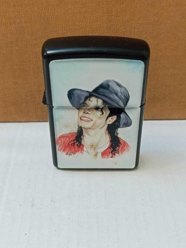 Ç4---KULLANILMAMIŞ MİCHAEL JACKSON GÖRSELLİ BENZİNLİ ÇAKMAK başlıklı antika/koleksiyon objesinin menşei belirtilmemiştir. Objenin ait olduğu dönem bilinmeketedir.