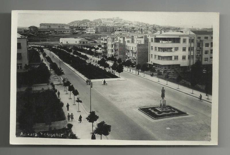 ** CADDE ORTASINDA ATATÜRK HEYKELİ VE YENİŞEHİR TEMALI ESKİ ANKARA FOTOKARTI ** 14 x 9 cm.ebadında,arkası yazılı ve çil durumda eski Ankara fotokartıdır...