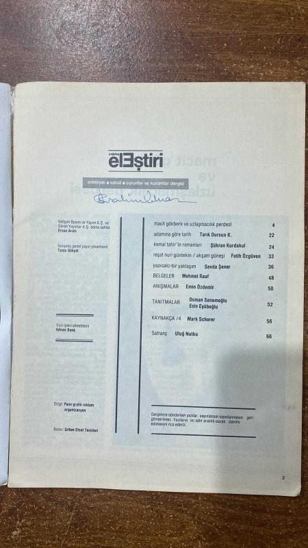ÇAĞDAŞ ELEŞTİRİ, EDEBİYAT, SANAT, SORUNLAR VE KURAMLAR DERGİSİ - TEMMUZ 1982 - MACİT GÖKBERK VE UZLAŞMACILIK PERDESİ - ADAMINA GÖRE TARİH TARIK DURSUN - KEMAL TAHİR ROMANLARI ŞÜKRAN KURDAKUL - REŞAT NURİ GÜNTEKİN AKŞAM GÜNEŞİ - FATİH ÖZGÜVEN - YAPILSACI BİR YAKLAŞIM SEVDA ŞENER - BELGER MEHMET RAUF - ANIŞMALAR EMİN ÖZDEMİR - TANITMALAR - OSMAN SENEMOĞLU - ESİN EYÜPOĞLU - MARK SCHORER - ULUĞ NUTKU - YENİK DÜŞEN KAHRAMNLAR - TEKNİKTEN SÖZEDEN HEMEN HER ŞEYDEN SÖZEDİYOR SAYILIR - TARİH YAZARI YANSIZ OLABİLİR Mİ - BEN DE ARTIK ROMANCI OLMUŞTUM- KAYNAKÇA - TANITMALAR - SATRANÇ - 66 SAYFA adlı eser, Kitap > Edebiyat, Kurgu > Edebiyat Bilimi kategorisinde İkinci El olarak satıştadır.