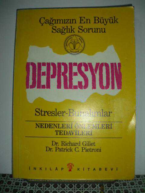 ÇAĞIMIZIN EN BÜYÜK SAĞLIK SORUNU ''DEPRESYON'' STRESLER BUNALIMLAR NEDENLERİ ÖNLEMLERİ TEDAVİLERİ 2.EL, RICHARD GILLET - PATRICK C. PIETRONI tarafından kaleme alınmıştır. Kitap 1990 yılında İNKILAP tarafından yayınlanmıştır. Bu baskının çevirisi ZİYA KÜTEVİN tarafından yapılmıştır. 232 sayfadır. ÇAĞIMIZIN EN BÜYÜK SAĞLIK SORUNU ''DEPRESYON'' STRESLER BUNALIMLAR NEDENLERİ ÖNLEMLERİ TEDAVİLERİ 2.EL adlı eser Türkçe dilindedir.