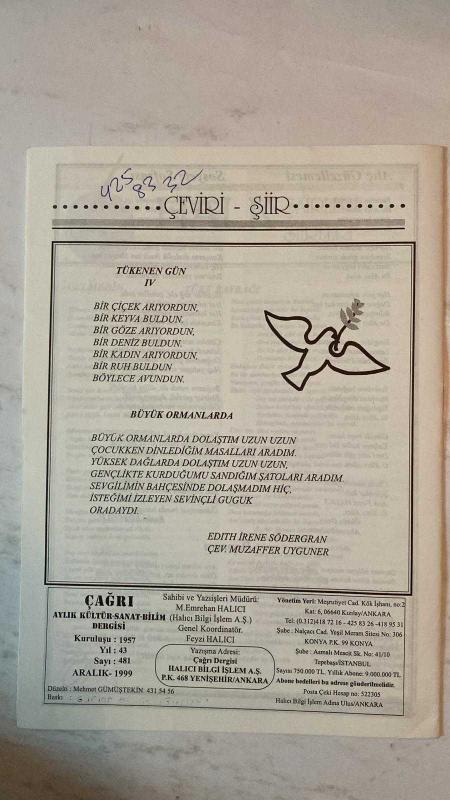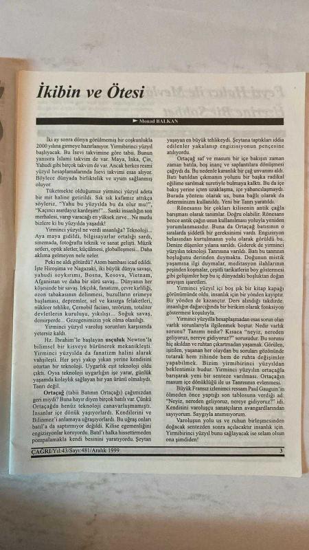 ÇAĞRI KÜLTÜR, SANAT, BİLİM DERGİSİ - ARALIK 1999 SAYI: 481 FEYZI HALICI - YILMAZ KARAKOYUNLU - MONAD BALKAN - N. YALÇIN DİKİLİTAŞ - ALI RIDVAN BÜLBÜL - HASAN SONGÜR - AYHAN HÜNALP - ÖZCAN YALÇIN - FAZIL BAYRAKTAR - HALIL SOYUER - M. TAHIR SAKMAN - HASAN MERCAN - SEYIT KÜÇÜKBEZİRCİ - KAYA ÖZDEMİR - ABDULLAH SATOĞLU - FUAT ÖNDER - M. HALISTIN KUKUL - FAIKA SARP - HALIM YAĞCIOĞLU - DR. ISMAIL ALI SARAR - HALISE ÖZTÜRKMEN - A. NECMETTIN ÇANKA - HÜSEYIN YURDABAK - LÜTFÜ KILIC - ALI KAYIKÇI - MUHARREM KUBAT - FARUK ORAY - OSMAN VASFI DİKİLİTAŞ - MUZAFFER UYGUNER - NURTEN ÖZCAN - MUSTAFA ÜNAL - AŞIK ŞEREF TAŞLIOVA - AŞIK H. IBRAHIM GÜLEÇ - ÖKSÜZ OZAN A. YILDIRIM - RASIM KOROGLU - H. OSMAN NURI GEMİCİ - EDITH IRENE SÖDERGRAN - M.EMREHAN HALICI - MEHMET GÜMÜŞTEKİN HOŞGÖRÜ - DOSTUMUZ AZMI AYTAÇ BEY İÇİNDİR - ÇAĞRI'NIN YAYIN HİKÂYESİ - TÜKENEN GÜN - BÜYÜK ORMANLARDA - KÜLTÜR SANAT BİLİM DERGİSİ - TAM TAKIM EKSİKSİZ 32 SAYFA adlı eser, Kitap > Süreli Yayınlar > Dergiler > Magazin, Moda kategorisinde İkinci El olarak satıştadır.