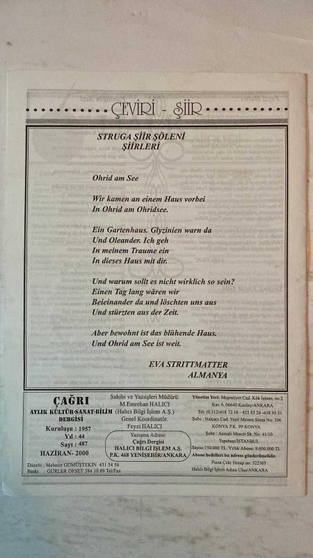 ÇAĞRI KÜLTÜR, SANAT, BİLİM DERGİSİ - HAZİRAN 2000 SAYI: 487 FEYZI HALICI - AZMI AYTAÇ - MONAD BALKAN - TURHAN DOYRAN - FIKRET SEZGİN - FAZIL BAYRAKTAR - FAIKA SARP - NEVIN KORUCUOĞLU - HALIL SOYUER - ABDULLAH SATOĞLU - EDIT TASNADI - A. NECMETTIN ÇANGA - ABDULLAH AKAY - HALISE ÖZTÜRKMEN - HIKMET ÖZDEMİR - HALENUR KOR - YÜKSEL AYVALI - EBRU ÖZTÜRK - AHMET AYBERKİN - BASRI GOCUL - DR. ISMAIL ALI SARAR - MURAT ÖZMEN - HASAN MERCAN - MUZAFFER UYGUNER - M. HALISTIN KUKUL - FARUK ORAY - KAHRAMAN OLGAÇ - ALI KIRCA - AŞIK ŞEREF TAŞLIOVA - AŞIK KUL NURİ - AŞIK PERVANI - AŞIK MEHMET GÜLHANI - LÜTFÜ KILIÇ - RABIA BARIŞ - YÜCEL İPEK - EVA STRITTMATTER BOS VERİN - MEVLÂNA’NIN YAŞAMA SEVİNCİ VE KONYA TURİZMİ - MESNEVİ’DEN YAŞAMA IŞIK - ŞEYH GALİP VE MEVLÂNA’NIN AŞK MİRASI - KONYA’NIN TARİHİ VE SANAT DEĞERLERİ - ÇATALHÖYÜK’TEN MÜZELERE TURİZM KÖPRÜSÜ - STRUGA ŞİİR ŞÖLENİ ŞİİRLERİ - EVA STRITTMATTER’TEN “OHRID AM SEE” - ÇAĞRI’YA ABONE OLUNUZ - TAM TAKIM EKSİKSİZ 32 SAYFA, FEYZİ HALICI tarafından kaleme alınmıştır. Eser M.EMREHAN HALICI editörlüğünde hazırlanmıştır. Kitap GÜRLER OFSET tarafından yayınlanmıştır. 32 sayfadır. ÇAĞRI KÜLTÜR, SANAT, BİLİM DERGİSİ - HAZİRAN 2000 SAYI: 487 FEYZI HALICI - AZMI AYTAÇ - MONAD BALKAN - TURHAN DOYRAN - FIKRET SEZGİN - FAZIL BAYRAKTAR - FAIKA SARP - NEVIN KORUCUOĞLU - HALIL SOYUER - ABDULLAH SATOĞLU - EDIT TASNADI - A. NECMETTIN ÇANGA - ABDULLAH AKAY - HALISE ÖZTÜRKMEN - HIKMET ÖZDEMİR - HALENUR KOR - YÜKSEL AYVALI - EBRU ÖZTÜRK - AHMET AYBERKİN - BASRI GOCUL - DR. ISMAIL ALI SARAR - MURAT ÖZMEN - HASAN MERCAN - MUZAFFER UYGUNER - M. HALISTIN KUKUL - FARUK ORAY - KAHRAMAN OLGAÇ - ALI KIRCA - AŞIK ŞEREF TAŞLIOVA - AŞIK KUL NURİ - AŞIK PERVANI - AŞIK MEHMET GÜLHANI - LÜTFÜ KILIÇ - RABIA BARIŞ - YÜCEL İPEK - EVA STRITTMATTER BOS VERİN - MEVLÂNA’NIN YAŞAMA SEVİNCİ VE KONYA TURİZMİ - MESNEVİ’DEN YAŞAMA IŞIK - ŞEYH GALİP VE MEVLÂNA’NIN AŞK MİRASI - KONYA’NIN TARİHİ VE SANAT DEĞERLERİ - ÇATALHÖYÜK’TEN MÜZELERE TURİZM KÖPRÜSÜ - STRUGA ŞİİR ŞÖLENİ ŞİİRLERİ - EVA STRITTMATTER’TEN “OHRID AM SEE” - ÇAĞRI’YA ABONE OLUNUZ - TAM TAKIM EKSİKSİZ 32 SAYFA adlı eser Türkçe dilindedir.