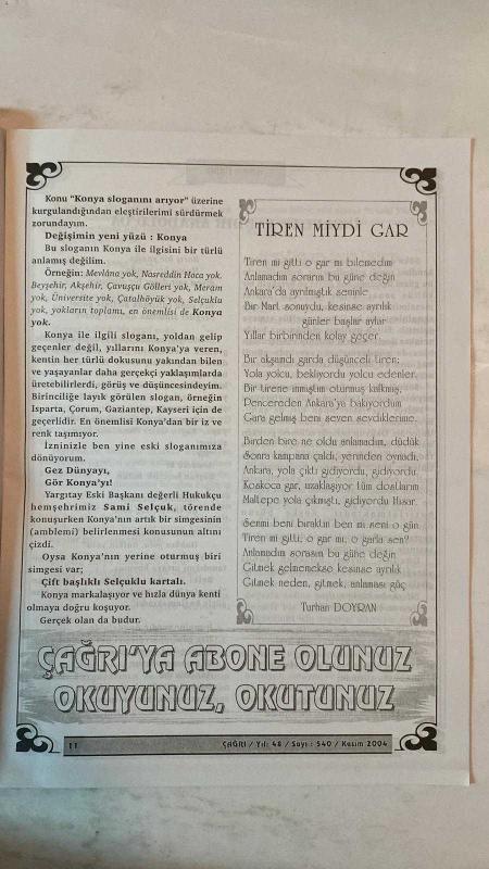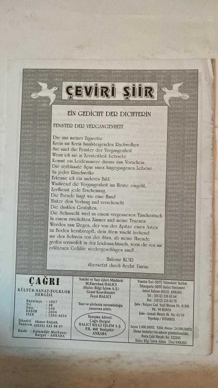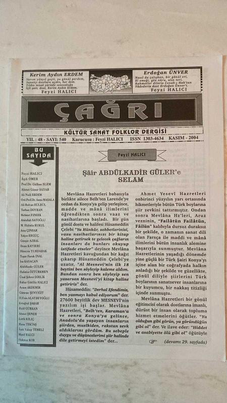 ÇAĞRI KÜLTÜR, SANAT, BİLİM DERGİSİ - KASIM 2004 SAYI: 540 KERIM AYDIN ERDEM - ERDOĞAN ÜNVER - FEYZI HALICI - AŞIK ÖMER - PROF. DR. GÜLHAN SLEM - AHMET GÜNER SAYAR - ALI NAILI ERDEM - ORD. PROF. DR. ANNA MASALA - ALI RIDVAN BÜLBÜL - TURHAN DOYRAN - MEHMET FINDIK - ABDULLAH SATOĞLU - M. HALISTIN KUKUL - ATEŞ ÇINSAR - YALÇIN ERGÜÇ - GÜNŞIN AZRAL - IHSAN KAYSERI - HÜSEYIN YURDABAK - YAŞAR FARUK INAL - ISA KAYACAN - ABDÜLKADIR GÜLER - HALISTIN ÖZTÜRKMEN - UNAL ŞÖHRET DİRLİK - BAHAR GÖKFİLIZ HALICI - AYSEN AKDEMİR - GÜMRAN ŞENYİĞİT - H. ESIN ALAYBEYOĞLU - ERTUGRUL ŞAKAR - HALIL GÜRKAN - AHMET ŞENER - LÜTFÜ KILIÇ - MUSA TEKTAŞ - AŞIK YAKUP TEMELİ - MARIF BALCI - HALENUR KOR KERIM AYDIN ERDEM’E VE ERDOĞAN ÜNVER’E VEDA ŞİİRLERİ - ŞAİR ABDÜLKADİR GÜLER’E SELAM - MEVLÂNA VE MESNEVİ’NİN DOĞUŞU - AHMED YESEVİ’DEN MEVLÂNA’YA ŞİİR VE TASAVVUF - ARUZ VE TÜRKÇE İLE MANEVİ İLİMLER - MEVLÂNA’NIN GÖNÜL EĞİTİMİ - “YA OLDUĞUN GİBİ GÖRÜN” ÖĞÜDÜ - ÇEVİRİ ŞİİR: FENSTER DER VERGANG- TAM TAKIM EKSİKSİZ 32 SAYFA adlı eser, Kitap > Süreli Yayınlar > Dergiler > Magazin, Moda kategorisinde İkinci El olarak satıştadır.