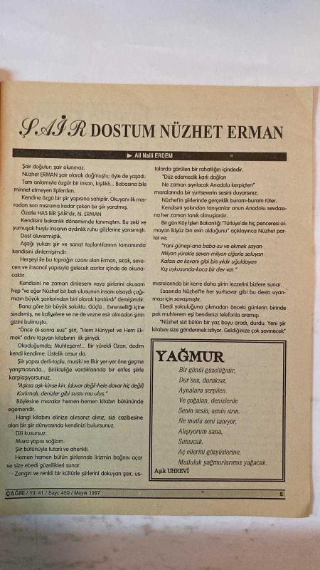 ÇAĞRI KÜLTÜR, SANAT, BİLİM DERGİSİ - MAYIS 1997 SAYI: 450 ABDULLAH SATOĞLU - ANNA MASALA - HALID SELIM - ALI NAILI ERDEM - AŞIK UHREVI - FAIKA SARP - AHMET SEVGI - YAVUZ BİLDİK - A. NECMETTIN ÇANGA - ORHAN SEYFI ORHON - TURHAN DOYRAN - SEYIT KÜÇÜKBEZİRCİ - ZEKI OĞUZ - M. KEMAL YILMAZ - AYHAN HÜNALP - MUALLA DAMAR - MUZAFFER UYGUNER - HALISE ÖZTÜRKMEN - M. HALISTIN KUKUL - NEVIN KORUCUOĞLU - MEHMET OKUR - MINE KALLEM - KAYA ÖZDEMİR - ISMAIL HAKKI SIR - HÜSEYIN YURDABAK - MELEK YILMAZTÜRK - M. LOTFI HODOĞLU - YÜCEL IPEK - EBRU TÜRKANIK - R. SAMI HAMAMCI - EDIZ KUNTASAL - AYTEN GÜNAYDIN - ZEYNEP EKENER - KAMIL UĞURLU - LEYLA OZHAN - AHMET YILDIRIM - AŞIK ATAROĞLU - AŞIK TEMEL TURABI - ZIKRI ALIYAR - GALKAYA KIZILTUĞ - RAGIBE TÜRK - S. HARIKA DEVELİOĞLU YAHYA BENEKAY'IN AZIZ RUHUNA - ÇAĞRI'NIN TÜRK DİLİNE KATKILARI - TÜRK ŞİİRİNİN GELECEĞİ - DUA - ZAMANI SENİNLE BÖLÜŞMEK GÜZEL - KARANFİLSİN - YARIM ASIR - BABİL DEĞİL MISIR DEĞİL -TAM TAKIM EKSİKSİZ 32 SAYFA, FEYZİ HALICI tarafından kaleme alınmıştır. Eser M.EMREHAN HALICI editörlüğünde hazırlanmıştır. Kitap GÜRLER OFSET tarafından yayınlanmıştır. 32 sayfadır. ÇAĞRI KÜLTÜR, SANAT, BİLİM DERGİSİ - MAYIS 1997 SAYI: 450 ABDULLAH SATOĞLU - ANNA MASALA - HALID SELIM - ALI NAILI ERDEM - AŞIK UHREVI - FAIKA SARP - AHMET SEVGI - YAVUZ BİLDİK - A. NECMETTIN ÇANGA - ORHAN SEYFI ORHON - TURHAN DOYRAN - SEYIT KÜÇÜKBEZİRCİ - ZEKI OĞUZ - M. KEMAL YILMAZ - AYHAN HÜNALP - MUALLA DAMAR - MUZAFFER UYGUNER - HALISE ÖZTÜRKMEN - M. HALISTIN KUKUL - NEVIN KORUCUOĞLU - MEHMET OKUR - MINE KALLEM - KAYA ÖZDEMİR - ISMAIL HAKKI SIR - HÜSEYIN YURDABAK - MELEK YILMAZTÜRK - M. LOTFI HODOĞLU - YÜCEL IPEK - EBRU TÜRKANIK - R. SAMI HAMAMCI - EDIZ KUNTASAL - AYTEN GÜNAYDIN - ZEYNEP EKENER - KAMIL UĞURLU - LEYLA OZHAN - AHMET YILDIRIM - AŞIK ATAROĞLU - AŞIK TEMEL TURABI - ZIKRI ALIYAR - GALKAYA KIZILTUĞ - RAGIBE TÜRK - S. HARIKA DEVELİOĞLU YAHYA BENEKAY'IN AZIZ RUHUNA - ÇAĞRI'NIN TÜRK DİLİNE KATKILARI - TÜRK ŞİİRİNİN GELECEĞİ - DUA - ZAMANI SENİNLE BÖLÜŞMEK GÜZEL - KARANFİLSİN - YARIM ASIR - BABİL DEĞİL MISIR DEĞİL -TAM TAKIM EKSİKSİZ 32 SAYFA adlı eser Türkçe dilindedir.