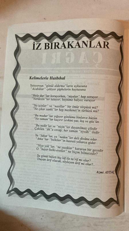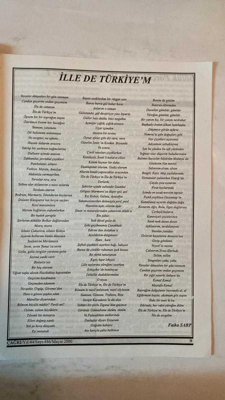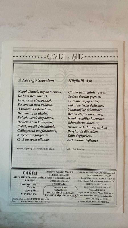 ÇAĞRI KÜLTÜR, SANAT, BİLİM DERGİSİ - MAYIS 2000 SAYI: 486 - AZMI AYTAÇ - MONAD BALKAN - FIKRET SEZGİN - TURHAN DOYRAN - M. HALISTIN KUKUL - HALIL SOYUER - ALI NAILI ERDEM - FAIKA SARP - FAZIL BAYRAKTAR - ILHAN GEÇER - NIHAT AŞAR - EDIT TASNADI - DILEK ÖNDER - C. MUHITTIN KOZANOĞLU - HALÜK ŞAN DİKMEN - ABDÜLKADIR GÜLER - MUZAFFER UYGUNER - HALISE ÖZTÜRKMEN - M. TAHIR SAKMAN - HASAN MERCAN - AYSEL AL - M. HALICI - A. SEFA ODABAŞI - LÜTFİ KILIÇ - M. LÜTFİ HODOĞLU - AHMET AYBERKİN - EBRU BİRKAN - NECMIYE KURU - ABDULLAH SATOĞLU - FUAT ÖNDER - AŞIK ŞEREF TAŞLIOVA - SABRI DIL - AŞIK TEMEL TURABI - YÜCEL IPEK - KAROLY KISFALUDY MUAMMA - YUNUS EMRE ARAMIZDA YAŞIYOR - HALK EDEBİYATI, TÜRKÜLER VE ÂŞIK GELENEĞİ ÜZERİNE - ANADOLU’DA TÜRK-İSLÂM DÜŞÜNCESİNİN ŞİİRLE YÜKSELİŞİ - HALK ŞİİRİNDE DİL, HECE VE DEYİŞ USTALIĞI - ÂŞIKLARIN ATIFLI BULUŞMALARI VE ATIŞMA GELENEĞİ - ÇEVİRİ ŞİİR: “HÜZÜNLÜ AŞK” (KAROLY KISFALUDY, ÇEVİREN: EDIT TASNADI) - KADER, ACI VE DEĞİŞMEYEN DERTL - TAM TAKIM EKSİKSİZ 32 SAYFA, FEYZİ HALICI tarafından kaleme alınmıştır. Eser M.EMREHAN HALICI editörlüğünde hazırlanmıştır. Kitap GÜRLER OFSET tarafından yayınlanmıştır. 32 sayfadır. ÇAĞRI KÜLTÜR, SANAT, BİLİM DERGİSİ - MAYIS 2000 SAYI: 486 - AZMI AYTAÇ - MONAD BALKAN - FIKRET SEZGİN - TURHAN DOYRAN - M. HALISTIN KUKUL - HALIL SOYUER - ALI NAILI ERDEM - FAIKA SARP - FAZIL BAYRAKTAR - ILHAN GEÇER - NIHAT AŞAR - EDIT TASNADI - DILEK ÖNDER - C. MUHITTIN KOZANOĞLU - HALÜK ŞAN DİKMEN - ABDÜLKADIR GÜLER - MUZAFFER UYGUNER - HALISE ÖZTÜRKMEN - M. TAHIR SAKMAN - HASAN MERCAN - AYSEL AL - M. HALICI - A. SEFA ODABAŞI - LÜTFİ KILIÇ - M. LÜTFİ HODOĞLU - AHMET AYBERKİN - EBRU BİRKAN - NECMIYE KURU - ABDULLAH SATOĞLU - FUAT ÖNDER - AŞIK ŞEREF TAŞLIOVA - SABRI DIL - AŞIK TEMEL TURABI - YÜCEL IPEK - KAROLY KISFALUDY MUAMMA - YUNUS EMRE ARAMIZDA YAŞIYOR - HALK EDEBİYATI, TÜRKÜLER VE ÂŞIK GELENEĞİ ÜZERİNE - ANADOLU’DA TÜRK-İSLÂM DÜŞÜNCESİNİN ŞİİRLE YÜKSELİŞİ - HALK ŞİİRİNDE DİL, HECE VE DEYİŞ USTALIĞI - ÂŞIKLARIN ATIFLI BULUŞMALARI VE ATIŞMA GELENEĞİ - ÇEVİRİ ŞİİR: “HÜZÜNLÜ AŞK” (KAROLY KISFALUDY, ÇEVİREN: EDIT TASNADI) - KADER, ACI VE DEĞİŞMEYEN DERTL - TAM TAKIM EKSİKSİZ 32 SAYFA adlı eser Türkçe dilindedir.