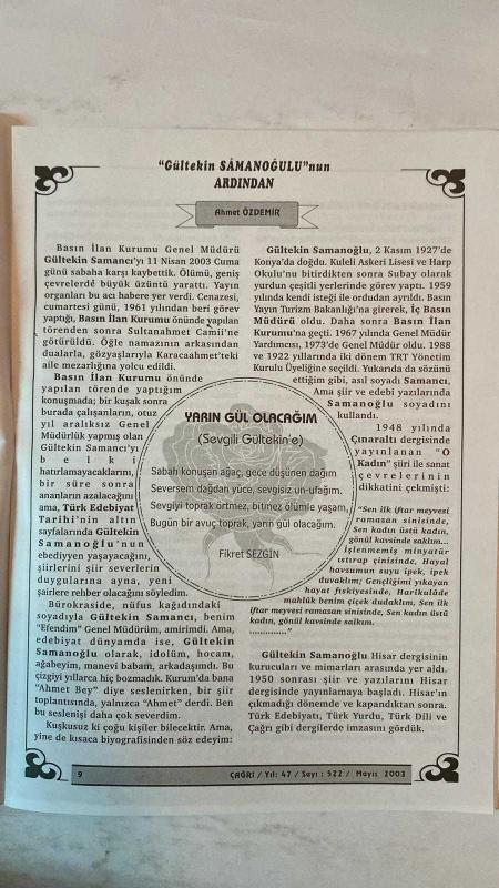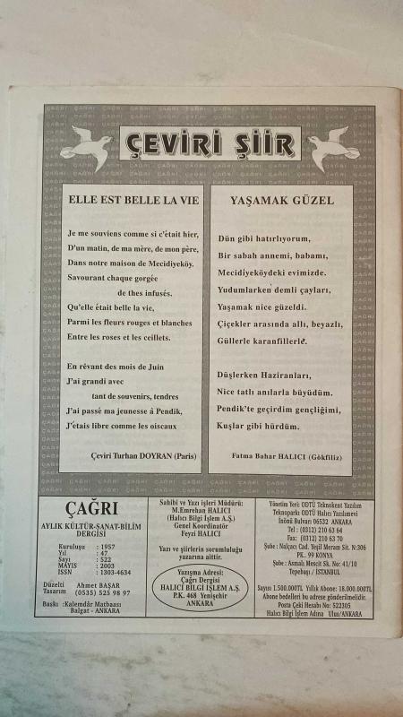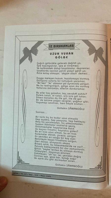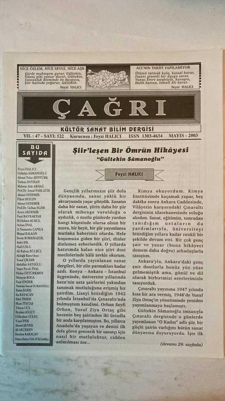 ÇAĞRI KÜLTÜR, SANAT, BİLİM DERGİSİ - MAYIS 2003 SAYI: 522 - GÜLTEKIN SAMANOĞLU - AHMET TUFAN ŞENTÜRK - TURHAN DOYRAN - MEHMET ZEKI AKDAĞ - PROF. DR. ISMAIL PARLATIR - AHMET ÖZDEMİR - FIKRET SEZGIN - PROF. DR. GÜLHAN SLEM - AYSEN AKDEMİR - FAZIL BAYRAKTAR - M. HALISTIN KUKUL - AYHAN INAL - A. NECMETTIN ÇANGA - MONAD BALKAN - SEVDA KORKMAZGİL - SABRI DIL - HALIL USLU - ALI RIDVAN BÜLBÜL - AKDAĞLI KARA OZAN YUSUF ÇILDIR - ABDULLAH SATOĞLU - YAŞAR FARUK INAL - HALISE ÖZTÜRKMEN - HÜSEYIN KOCA - FUAT ÖNDER - NERIMAN SARYAL DURANOĞLU - RABIA BARIS - ISA KAYACAN - SIBEL TEBER - MUSA TEKTAŞ - YILMAZ GÜL - IBRAHIM SOGÜT - H. IBRAHIM GÜLEÇ - YÜCEL IPEK - AHMET ŞENER - ALI AKÇEKEN - İBRAHIM KARACAY - FATMA BAHAR HALICI (GÖKFİLİZ) NICE ÖZLEM, NİCE SEVGİ, NİCE AŞK - ACI’NIN TARİFİ YAPILAMIYOR - ŞİİR’LEŞEN BİR ÖMRÜN HİKÂYESİ: GÜLTEKİN SAMANOĞLU - ÇINARALTI DERGİSİ VE HECE ŞİİRİ - ORHAN SEYFI ORHON VE YUSUF ZIYA ORTAÇ’LA KARŞILAŞMA - SANATLA YOĞRULAN GENÇLİK YILLARI - “O - TAM TAKIM EKSİKSİZ 32 SAYFA adlı eser, Kitap > Süreli Yayınlar > Dergiler > Magazin, Moda kategorisinde İkinci El olarak satıştadır.