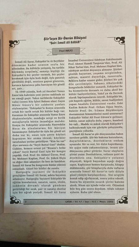 ÇAĞRI KÜLTÜR, SANAT, BİLİM DERGİSİ - MAYIS 2003 SAYI: 522 - GÜLTEKIN SAMANOĞLU - AHMET TUFAN ŞENTÜRK - TURHAN DOYRAN - MEHMET ZEKI AKDAĞ - PROF. DR. ISMAIL PARLATIR - AHMET ÖZDEMİR - FIKRET SEZGIN - PROF. DR. GÜLHAN SLEM - AYSEN AKDEMİR - FAZIL BAYRAKTAR - M. HALISTIN KUKUL - AYHAN INAL - A. NECMETTIN ÇANGA - MONAD BALKAN - SEVDA KORKMAZGİL - SABRI DIL - HALIL USLU - ALI RIDVAN BÜLBÜL - AKDAĞLI KARA OZAN YUSUF ÇILDIR - ABDULLAH SATOĞLU - YAŞAR FARUK INAL - HALISE ÖZTÜRKMEN - HÜSEYIN KOCA - FUAT ÖNDER - NERIMAN SARYAL DURANOĞLU - RABIA BARIS - ISA KAYACAN - SIBEL TEBER - MUSA TEKTAŞ - YILMAZ GÜL - IBRAHIM SOGÜT - H. IBRAHIM GÜLEÇ - YÜCEL IPEK - AHMET ŞENER - ALI AKÇEKEN - İBRAHIM KARACAY - FATMA BAHAR HALICI (GÖKFİLİZ) NICE ÖZLEM, NİCE SEVGİ, NİCE AŞK - ACI’NIN TARİFİ YAPILAMIYOR - ŞİİR’LEŞEN BİR ÖMRÜN HİKÂYESİ: GÜLTEKİN SAMANOĞLU - ÇINARALTI DERGİSİ VE HECE ŞİİRİ - ORHAN SEYFI ORHON VE YUSUF ZIYA ORTAÇ’LA KARŞILAŞMA - SANATLA YOĞRULAN GENÇLİK YILLARI - “O - TAM TAKIM EKSİKSİZ 32 SAYFA, FEYZİ HALICI tarafından kaleme alınmıştır. Eser M.EMREHAN HALICI editörlüğünde hazırlanmıştır. Kitap GÜRLER OFSET tarafından yayınlanmıştır. 32 sayfadır. ÇAĞRI KÜLTÜR, SANAT, BİLİM DERGİSİ - MAYIS 2003 SAYI: 522 - GÜLTEKIN SAMANOĞLU - AHMET TUFAN ŞENTÜRK - TURHAN DOYRAN - MEHMET ZEKI AKDAĞ - PROF. DR. ISMAIL PARLATIR - AHMET ÖZDEMİR - FIKRET SEZGIN - PROF. DR. GÜLHAN SLEM - AYSEN AKDEMİR - FAZIL BAYRAKTAR - M. HALISTIN KUKUL - AYHAN INAL - A. NECMETTIN ÇANGA - MONAD BALKAN - SEVDA KORKMAZGİL - SABRI DIL - HALIL USLU - ALI RIDVAN BÜLBÜL - AKDAĞLI KARA OZAN YUSUF ÇILDIR - ABDULLAH SATOĞLU - YAŞAR FARUK INAL - HALISE ÖZTÜRKMEN - HÜSEYIN KOCA - FUAT ÖNDER - NERIMAN SARYAL DURANOĞLU - RABIA BARIS - ISA KAYACAN - SIBEL TEBER - MUSA TEKTAŞ - YILMAZ GÜL - IBRAHIM SOGÜT - H. IBRAHIM GÜLEÇ - YÜCEL IPEK - AHMET ŞENER - ALI AKÇEKEN - İBRAHIM KARACAY - FATMA BAHAR HALICI (GÖKFİLİZ) NICE ÖZLEM, NİCE SEVGİ, NİCE AŞK - ACI’NIN TARİFİ YAPILAMIYOR - ŞİİR’LEŞEN BİR ÖMRÜN HİKÂYESİ: GÜLTEKİN SAMANOĞLU - ÇINARALTI DERGİSİ VE HECE ŞİİRİ - ORHAN SEYFI ORHON VE YUSUF ZIYA ORTAÇ’LA KARŞILAŞMA - SANATLA YOĞRULAN GENÇLİK YILLARI - “O - TAM TAKIM EKSİKSİZ 32 SAYFA adlı eser Türkçe dilindedir.