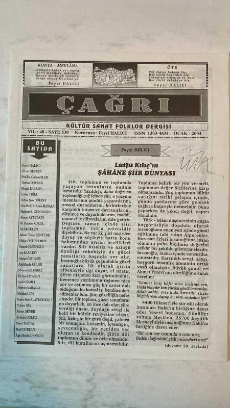 ÇAĞRI KÜLTÜR, SANAT, BİLİM DERGİSİ - OCAK 2004 SAYI : 530 - FIKRET SEZGIN - GULHAN SLEM - TURHAN DOYRAN - MONAD BALKAN - ERHAN TIGLI - ORHAN ŞAIK GÖKYAY - ANNA MASALA - MEHMET K GÜNDOĞDU - AHMET AYBERKIN - M HALISTIN KUKUL - ALI AKÇEKEN - AHMET TUFAN ŞENTÜRK - HALISE ÖZTÜRKMEN - ÖZTÜRK EMİROĞLU - ATA KARATAY - AHMET ÖZDEMIR - ABDÜLKADIR GÜLER - MEHMET BILDIRICI - ISA KAYACAN - AYNUR CAMCI - İBRAHİM KARAÇAYDO - MELAHAT ULVI - HAFIZE ESIN ALAYBEYOĞLU - YILMAZ GÜL - AHMET ŞENER - IBRAHIM GÜLEÇ - MUSA TEKTAŞ - HALIL GÜRKAN - AŞIK MUHLIS DENİZER - BAHAR HALICI - AHMET BAŞAR - M EMREHAN HALICI ÇAĞRI - ŞAHANE ŞİİR DÜNYASI - KÜLTÜR SANAT FOLKLOR DERGİSİ - BAŞTACIM - TAM TAKIM EKSİKSİZ 32 SAYFA, FEYZİ HALICI tarafından kaleme alınmıştır. Eser M.EMREHAN HALICI editörlüğünde hazırlanmıştır. Kitap GÜRLER OFSET tarafından yayınlanmıştır. 32 sayfadır. ÇAĞRI KÜLTÜR, SANAT, BİLİM DERGİSİ - OCAK 2004 SAYI : 530 - FIKRET SEZGIN - GULHAN SLEM - TURHAN DOYRAN - MONAD BALKAN - ERHAN TIGLI - ORHAN ŞAIK GÖKYAY - ANNA MASALA - MEHMET K GÜNDOĞDU - AHMET AYBERKIN - M HALISTIN KUKUL - ALI AKÇEKEN - AHMET TUFAN ŞENTÜRK - HALISE ÖZTÜRKMEN - ÖZTÜRK EMİROĞLU - ATA KARATAY - AHMET ÖZDEMIR - ABDÜLKADIR GÜLER - MEHMET BILDIRICI - ISA KAYACAN - AYNUR CAMCI - İBRAHİM KARAÇAYDO - MELAHAT ULVI - HAFIZE ESIN ALAYBEYOĞLU - YILMAZ GÜL - AHMET ŞENER - IBRAHIM GÜLEÇ - MUSA TEKTAŞ - HALIL GÜRKAN - AŞIK MUHLIS DENİZER - BAHAR HALICI - AHMET BAŞAR - M EMREHAN HALICI ÇAĞRI - ŞAHANE ŞİİR DÜNYASI - KÜLTÜR SANAT FOLKLOR DERGİSİ - BAŞTACIM - TAM TAKIM EKSİKSİZ 32 SAYFA adlı eser Türkçe dilindedir.