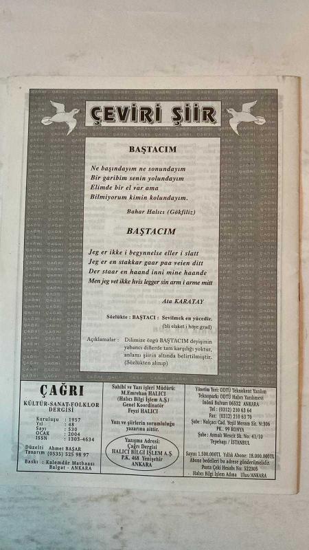 ÇAĞRI KÜLTÜR, SANAT, BİLİM DERGİSİ - OCAK 2004 SAYI : 530 - FIKRET SEZGIN - GULHAN SLEM - TURHAN DOYRAN - MONAD BALKAN - ERHAN TIGLI - ORHAN ŞAIK GÖKYAY - ANNA MASALA - MEHMET K GÜNDOĞDU - AHMET AYBERKIN - M HALISTIN KUKUL - ALI AKÇEKEN - AHMET TUFAN ŞENTÜRK - HALISE ÖZTÜRKMEN - ÖZTÜRK EMİROĞLU - ATA KARATAY - AHMET ÖZDEMIR - ABDÜLKADIR GÜLER - MEHMET BILDIRICI - ISA KAYACAN - AYNUR CAMCI - İBRAHİM KARAÇAYDO - MELAHAT ULVI - HAFIZE ESIN ALAYBEYOĞLU - YILMAZ GÜL - AHMET ŞENER - IBRAHIM GÜLEÇ - MUSA TEKTAŞ - HALIL GÜRKAN - AŞIK MUHLIS DENİZER - BAHAR HALICI - AHMET BAŞAR - M EMREHAN HALICI ÇAĞRI - ŞAHANE ŞİİR DÜNYASI - KÜLTÜR SANAT FOLKLOR DERGİSİ - BAŞTACIM - TAM TAKIM EKSİKSİZ 32 SAYFA adlı eser, Kitap > Süreli Yayınlar > Dergiler > Magazin, Moda kategorisinde İkinci El olarak satıştadır.