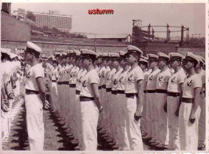** ÇAKI GİBİ DENİZCİ ÖĞRENCİLER FOTOĞRAFI ** 11.5 x 8.5 cm.ebadında,çok temiz durumda, eski fotoğraftır ... Fonda Hilton Oteli ve gazhane gözükmekte... Eski Mithatpaşa Stadyumu...