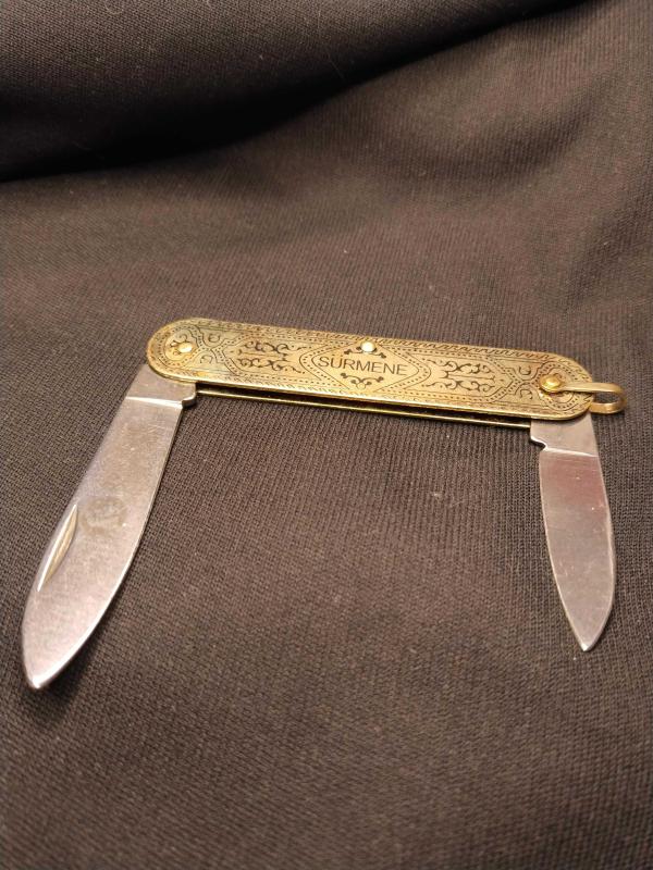 ÇAKI SÜRMENE ÇOK ŞIK VE KALİTELİ.GOLD PİRİNÇ GÖVDE.ÖZEL ÇELİK BIÇAKLAR ( KULLANILMAMIŞ) 160 başlıklı antika/koleksiyon objesi Türkiye menşe’lidir. 2000 ve sonrası dönemine aittir.
