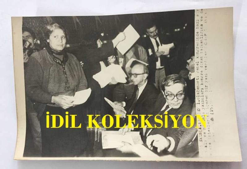 ÇALIŞMA ve SOSYAL GÜVENLİK ESKİ BAKANI AYDIN GÜVEN GÜRKAN'IN ORİJİNAL AJANS-BASIN FOTOĞRAFI - 18 x 12 cm EBADINDA - AYDIN GÜVEN GÜRKAN ve ERDAL İNÖNÜ, SODEP'İN 1. OLAĞANÜSTÜ GENEL KONGRESİNDE BAZI SİYASAL TUTUKLU ve HÜKÜMLÜLERİN AİLELERİNİN YAZILI TALEPLERİNİ ALDILAR, 1985, en son 5 ay önce güncellenmiştir.
