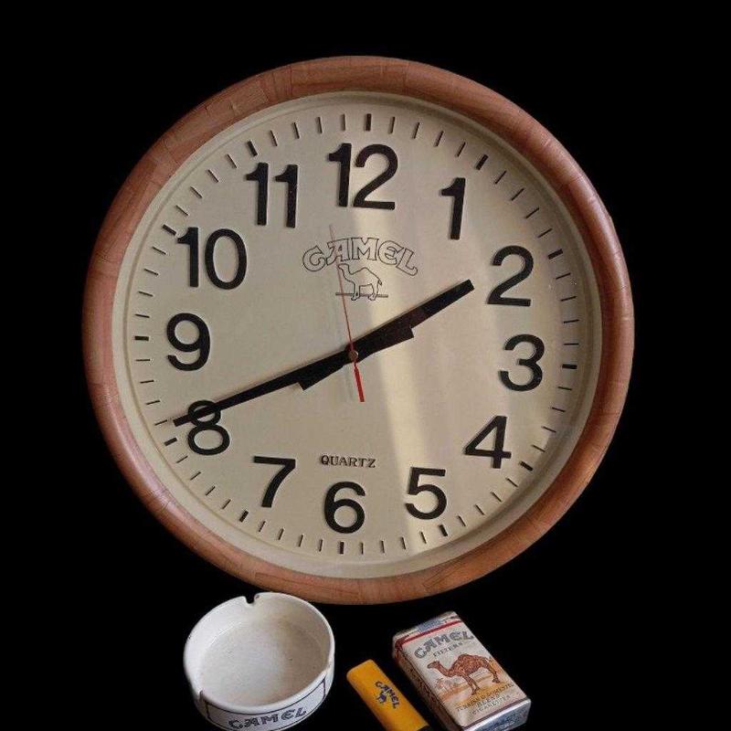 Eskilerden CAMEL sigarası duvar saati. Çok iyi durumda. Çalışıyor 38 cm Diğer ürünler dahil değildir