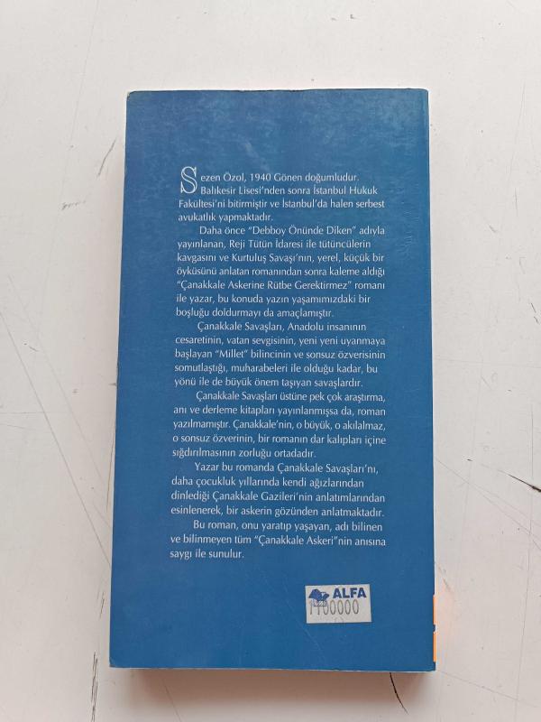 ÇANAKKALE ASKERİNE RÜTBE GEREKMEZ ( D.R.588 ), SEZEN ÖZOL tarafından kaleme alınmıştır. ÇANAKKALE ASKERİNE RÜTBE GEREKMEZ ( D.R.588 ) adlı eser Türkçe dilindedir.