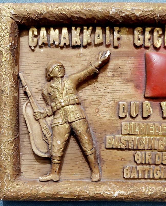 ÇANAKKALE GEÇİLMEZ DUVAR PANOSU ALÇIDAN YAPILMIŞTIR. ÇOK İYİ DURUMDADIR. 22,5 CM X 18 CM