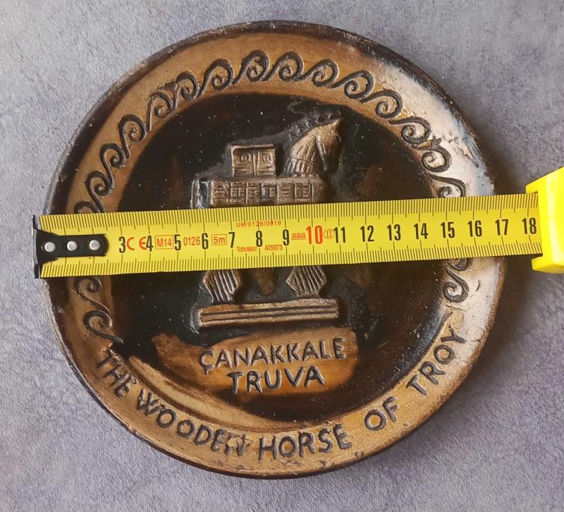 ÇANAKKALE TRUVA TEMALI EL YAPIMI ÇÖMLEK TABAK. KONDİSYON YÜKSEK KOLEKSİYONLUK NADİR başlıklı antika/koleksiyon objesi Türkiye menşe’lidir. 2000 ve sonrası dönemine aittir.