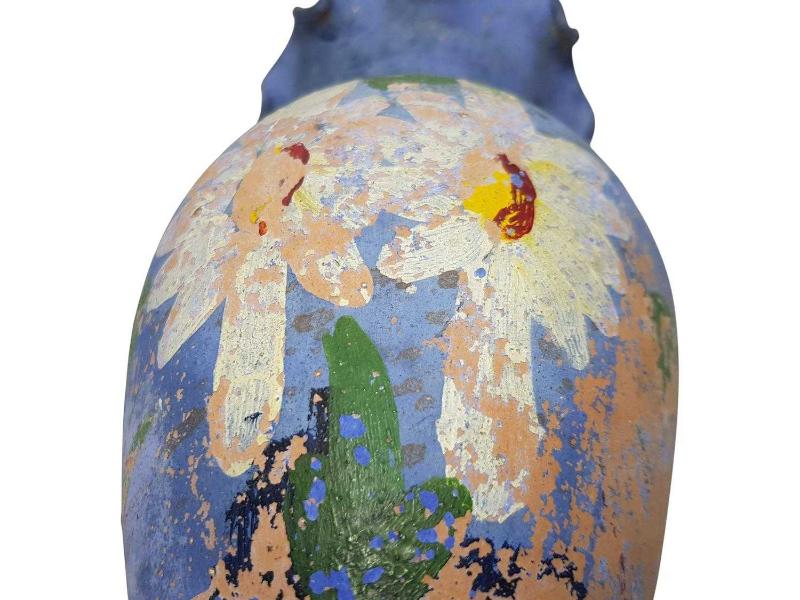 CUMHURİYET İLK DÖNEM, ÜZERİ SIRSIZ, EL BOYAMA TERRA COTA VAZO. YÜKSEKLİK: 29 CM