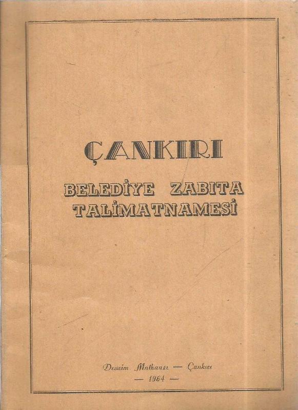 ÇANKIRI BELEDİYE ZABITA TALİMATNAMESİ, ÇANKIRI BELEDİYESİ tarafından kaleme alınmıştır. Kitap 1964 yılında DEVRİM MATBAASI tarafından [ÇANKIRI ] yayınlanmıştır. 68 sayfadır. ÇANKIRI BELEDİYE ZABITA TALİMATNAMESİ adlı eser Türkçe dilindedir.