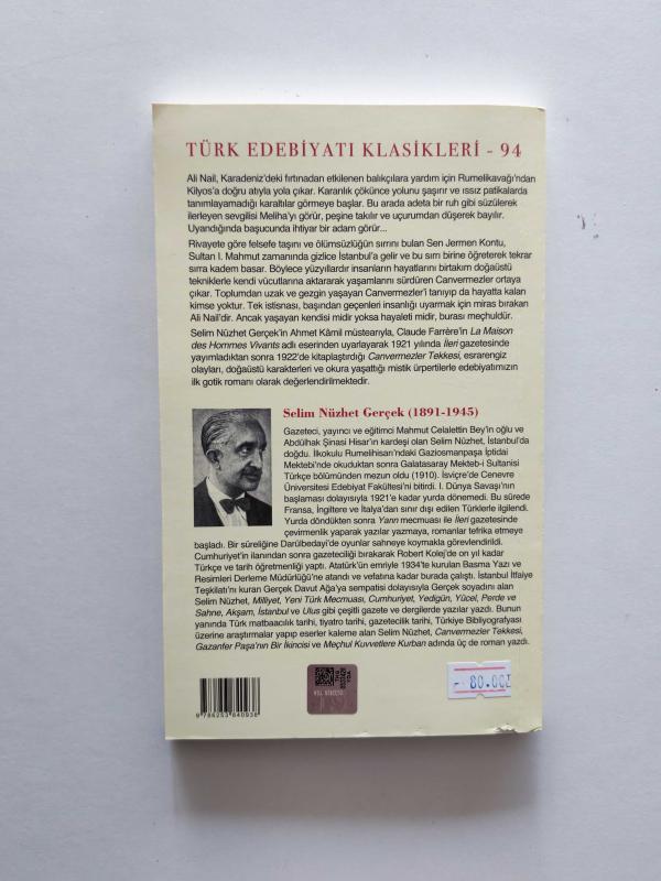 CANVERMEZLER TEKKESİ (GÜNÜMÜZ TÜRKÇESİYLE) (YENİ), SELİM NÜZHET GERÇEK tarafından kaleme alınmıştır. Eser EDT. ÖMER ASLAN editörlüğünde hazırlanmıştır. Kitap 2025 yılında İŞ BANKASI KÜLTÜR YAYINLARI tarafından [İSTANBUL] 978-625-384-093-8 ISBN kodu ile yayınlanmıştır. Satışta olan kitap, yayınevinin 1. baskısıdır. Bu baskının çevirisi BUDAK KAYABEK tarafından yapılmıştır. 120 sayfadır. Sayfa bilgisi 2. HAMUR olarak belirtilmiştir. CANVERMEZLER TEKKESİ (GÜNÜMÜZ TÜRKÇESİYLE) (YENİ) adlı eser Türkçe dilindedir.