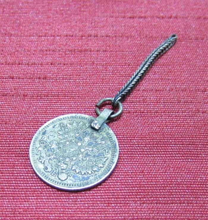 ZİNCİR HARİÇ ÇAPI 15mm ÇARLIK DÖNEMİ RUS GÜMÜŞ 5 KOPEK, TAKIDAN ÇIKMA ZİNCİRLİ