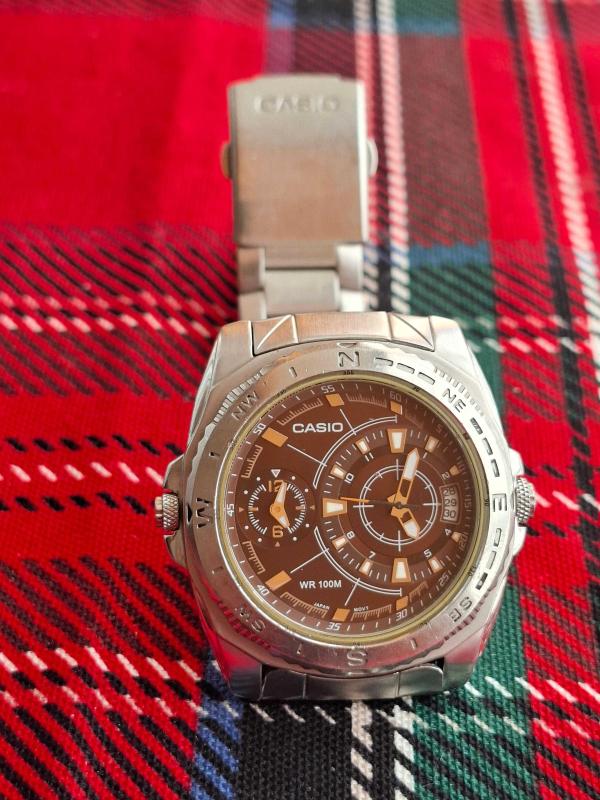 CASIO AMW-103 QUARTZ PİLLİ KOL SAATİ SAATİMİZ FUL ORJİNALDİR DUAL TİME SAAT ÇUKULATA RENK KADRAN TAKVİMLİ(BİR GÜN ÖNCE VE BİR GÜN SONRAYI GÖSTERİR) 100 METRE SU GEÇİRMEZLİK MİNERAL CAM ÇELİK KASA,ÇELİK KORDON KORDON 20-21 cm BİLEKLERE OLUR AKREP,YELKOVAN VE ENDEKSLERDE FOSFOR KASA ÇAPI: 47 mm 2 saatte çalışır durumda
