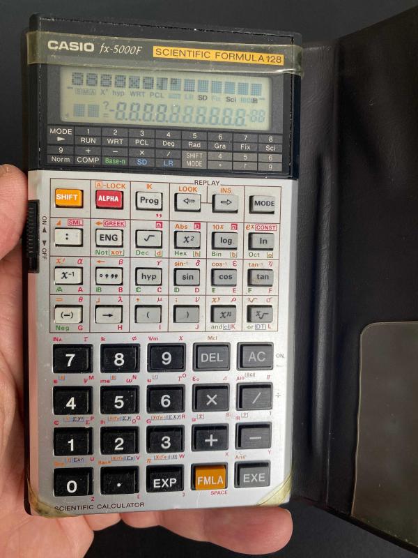 CASIO fx-5000F mühendislik hesap makinası. Çok fonksiyonlu CASIO fx-5000F SCIENTIFIC FORMULA 128 model mühendislik hesap makinası. Pilleri yeni değiştirildi. Kolay bulunan CR2032 pil takılıyor. Tertemiz kullanabilirsiniz.