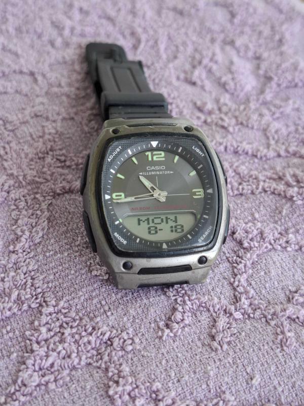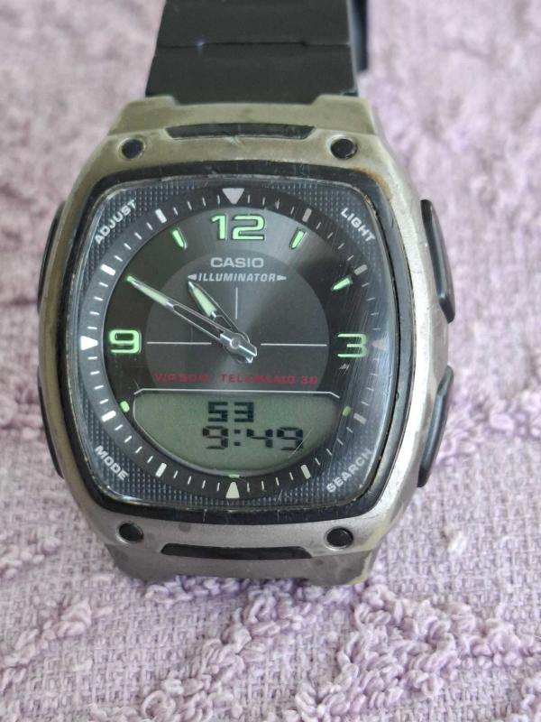 Saatimiz CASIO ILLUMINATÖR AW 81 dir.Bütün fonksiyonları çalışır durumdadır.TELEMEMO 30 özelliği var. Kasa çapı :40 mm.Oldukça temiz.Kadram muhteşem.Fosforlu. Anolog&Dijital mükemmel saatdir. KORDON DEĞİŞMİŞTİR