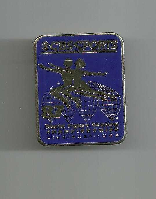 ** CBSSPORTS 87 WORLD FIGURE SKATING CHAMPIONSHIP CINCINATI USA ** Arkası klipsli nadir bir rozet.. Dünya Artistik Buz Pateni şampiyonası rozeti...