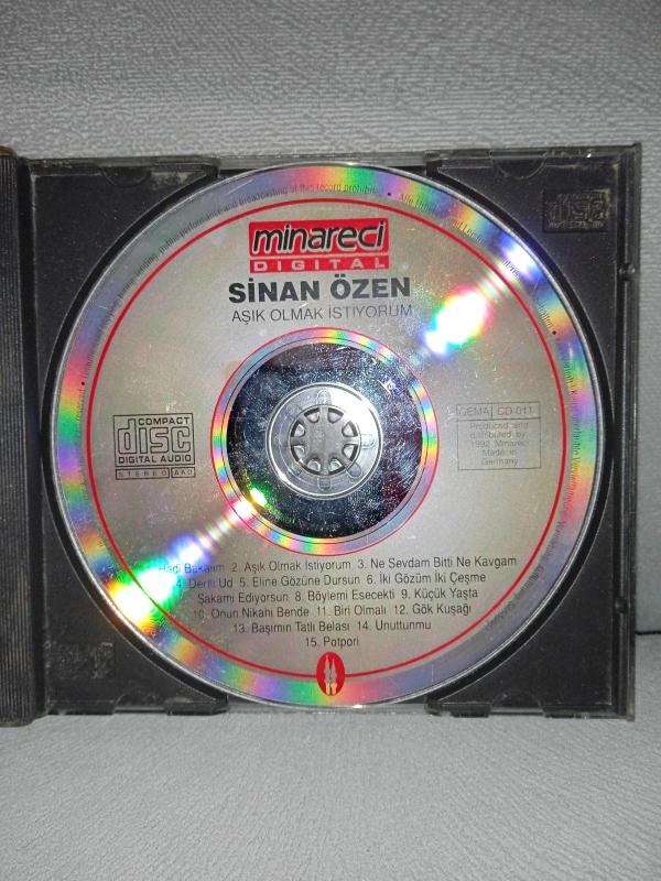CD Sinan Özen Aşık olmak istiyorum albümü. Orijinal minareci Alman baskı. kartoneti yok. Dinlemeyi etkilemeyen yoğun çizikler var. sorunsuz çalışıyor.