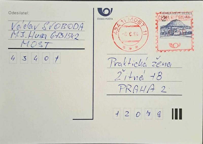 ÇEK CUMHURİYETİ (ÇEKOSLAVKYA) POSTA KARTI POSTADAN GEÇMİŞ KIRMIZI MAKİNA DAMGALI Ürün Görüldüğü Gibidir.