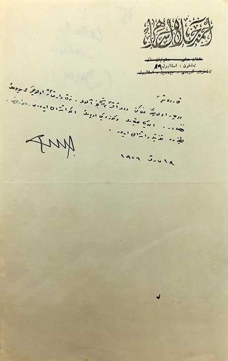CELÂL SAHİR EROZAN (1883-1935) - Islak imzalı, 1926 tarihli, tamamı Osmanlıca, "Ahmed Celâl Sahir" antetli kağıda yazılmış orijinal mektup başlıklı ürün, Efemera, Müzik, Sinema > Belge ve Evraklar > Osmanlıca Belgeler kategorisi altında İkinci El olarak satılmaktadır.