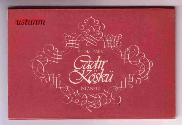 ** YILDIZ PARKI ÇADIR KÖŞKÜ KARTPOSTAL ALBÜMÜ ** İçinde 15 x 9.5 cm.ebadında ve çil durumda,akordiyon şeklinde 5 adet kartpostal bulunan, Türkiye Turing ve Otomobil Kurumu eski yayını kartpostal albümü... Fotoğraflar Çelik Gülersoy... Ali Rıza Baskan,Güzel Sanatlar Matbaası baskısı...