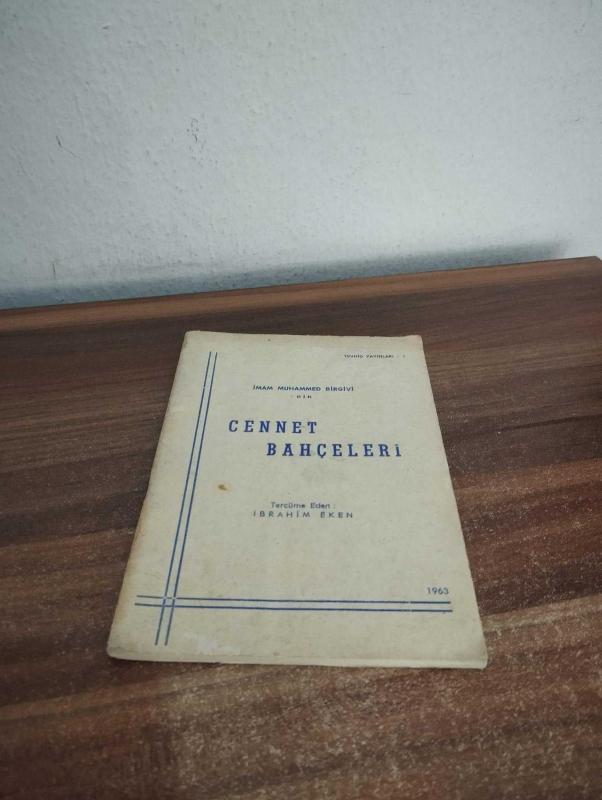 CENNET BAHÇELERİ - MİDİ BOY İMAM MUHAMMED BİRGİVİ ÇEVİRİ : İBRAHİM EKEN DOĞUŞ LTD. ŞTİ . YAY - 1963 KONDİSYON : YAŞINA BAĞLI HAFİF ZAMANSAL ESKİME SÖZ KONUSUDUR. HARİCİNDE İÇİ TEMİZ VE DİRİ DURUMDADIR. SORUNSUZDUR. EA1 NK