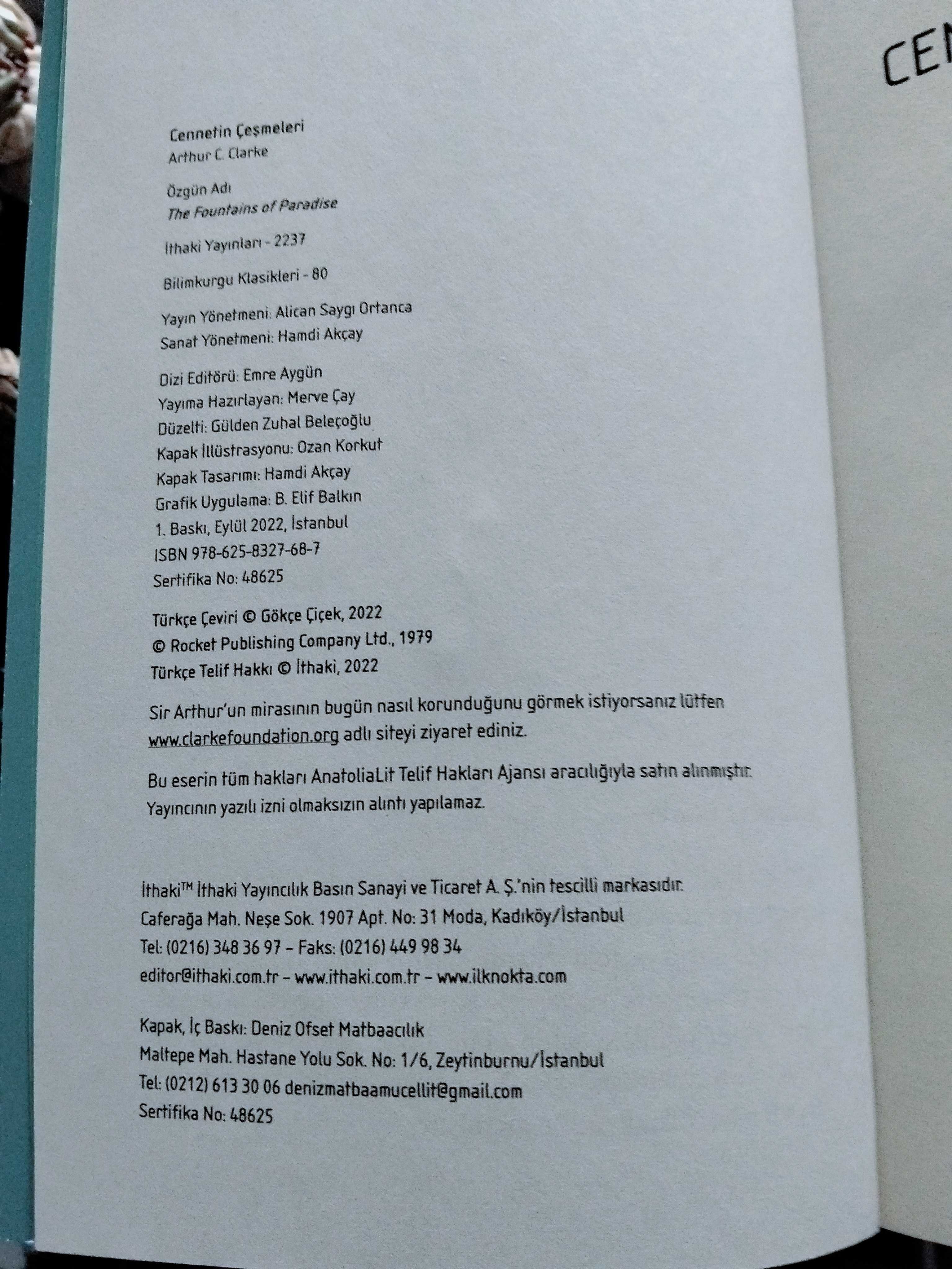 CENNETİN ÇEŞMELERİ adlı eser, Kitap > Edebiyat, Kurgu > Fantastik ve Bilim Kurgu > Dünya Edebiyatı kategorisinde İkinci El olarak satıştadır.